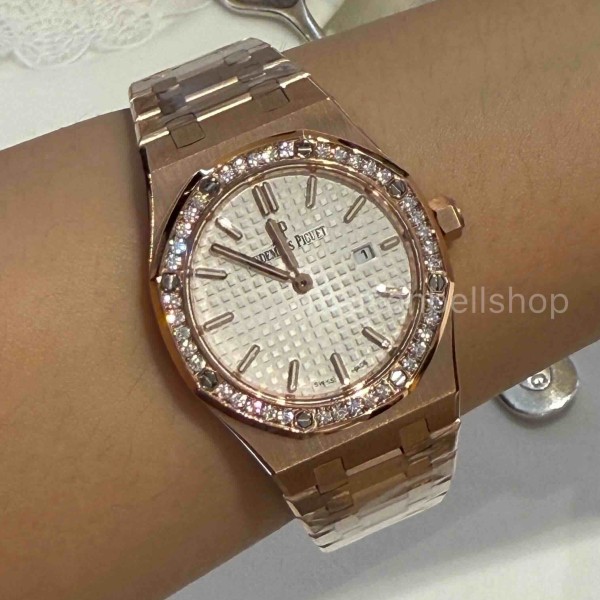 오데마 피게 로얄 오크 레이디 33mm는 여성스러움과 대담함을 동시에 담은 하이엔드 럭셔리 워치입니다.